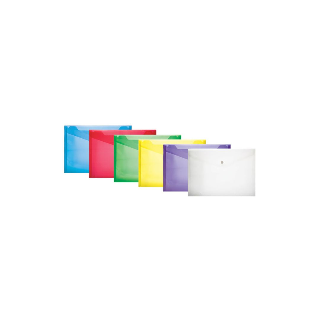 TREELINE Folder A4 PVC Carry Folder with Stud 180 micron Assorted pack of 6